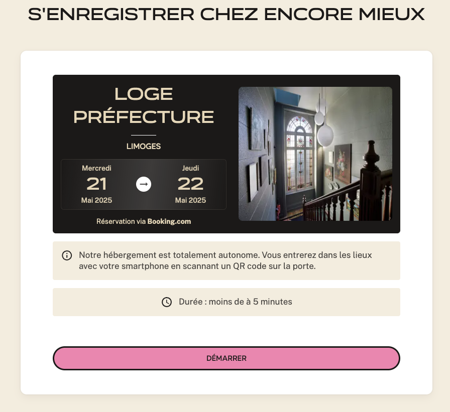 Vous avez réservé par l'intermédiaire d'un partenaire (Booking.com, Airbnb, Expedia, Hotel.com, etc.), nous vous demandons de réaliser un enregistrement en ligne.